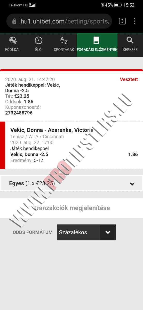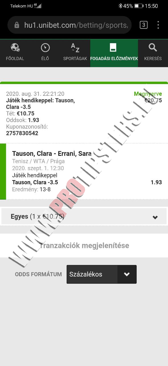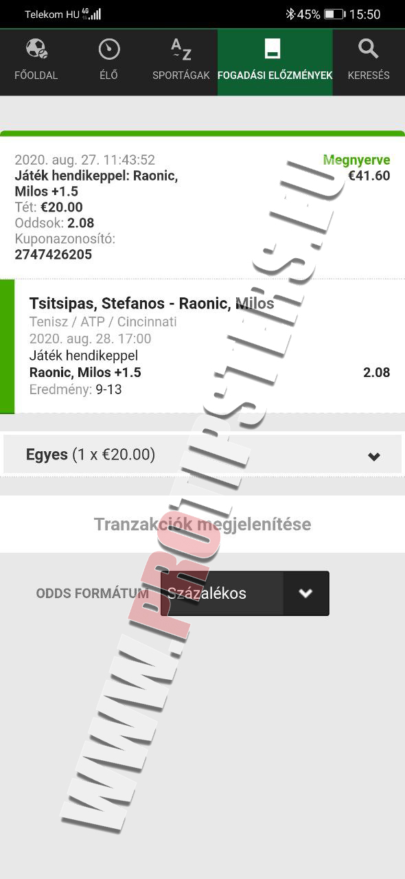 Mint láthatod, nem csak a nyertes fogadások szerepelnek a listában, tehát nem arról van szó, hogy a legszebb fogadásokat kifotóztuk, amik „jól mutatnak” és kitesszük láthatóvá. Itt arról van szó, és semmi más célunk nincs vele, mint hogy bemutassuk azt a korrekt hozzáállást, amivel állunk mindenki felé, aki megtisztel bizalmával. Emellett pedig annyira hiszünk a szolgáltatásunkban és abban a tudásban és tapasztalatban ami mögötte van, hogy fogadjuk is őket.