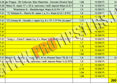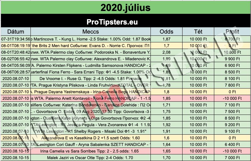 A sárga színű soroknál még a függő tippek szerepelnek, ezért nem olvashatóak.