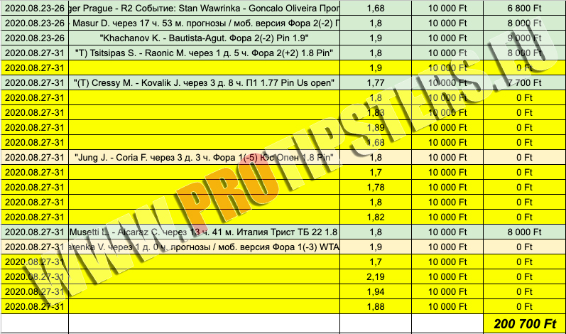 Nehéz szavakat találni egy olyan hónap után, mint amilyen az augusztus volt. Nem szeretjük felhánytorgatni a „mi szóltunk” jelzőt, ugyanakkor engedjétek meg, hogy mégis egy kis emlékeztetőt írjunk. Az Denver szolgáltatás most augusztusban indult újra, ugyanis a covid járvány ellenére úgy döntöttek a tenisz tornák szervezői, hogy folytatják tovább a mérkőzéseket, így mi is újra tudtuk indítani a teniszes Denver csoportot. Visszaellenőrizhető, és dokumentálható módon megtekinthető, hogy az újraindulásról szóltunk időben, minden ügyfelünknek küldtünk egy üzenetet, illetve ide, a blogba is kitettük mint cikk. Utána nagyjából két héttel újra jeleztük, hogy aki nem tette – főleg most, amikor sajnos igen nehéz sokaknak plusz jövedelemhez jutni – mindenképp vessen egy pillantást a szolgáltatásra és olvassa el, hogy tudná-e fogadni a tippeket, mert nagyon megéri. Ekkor valamivel 10 tét felett állt a csoport. Most, augusztus végén – illetve már szeptember elején – valamivel több, mint 20 tétnyi hozammal tudjuk búcsúztatni az augusztust. Hogy ez mit is jelent a számok nyelvén?