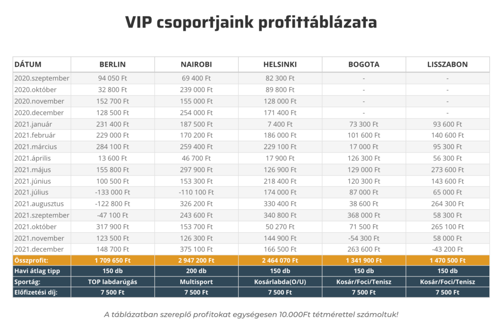 Berlin csoportunkat még így is profitábilisan követheted hiszen ebben a csoportban kizárólag a TOP ligákra fogadunk! Vagy talán a kis ligás tippek profitjával tömnéd tele a zsebed? Olvasd el a csoportajánlónkat és kezdd el most!